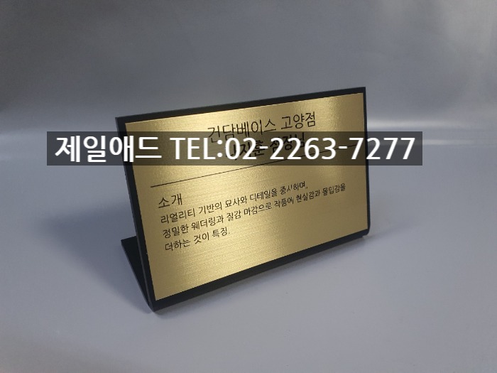 반다1-전시현판 설명명판 브렌드 표지판 브랜드 전시용 표찰 전시품 설명표시판 금속 스텐드 알림판 제품 안내판 제일애드 02-2263-7277