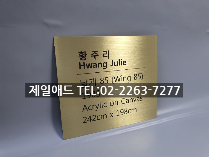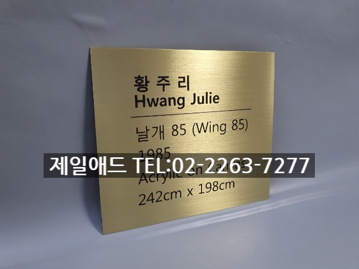 wing-갤러리 전시회 개인전 미술 작품 전시용 캡션 포트폴리오 네임텍 미술품 설명 표지판 아크릴 표찰 스텐 신주 안내판 동판 명판 금속 현판 제일애드 02-2263-7277