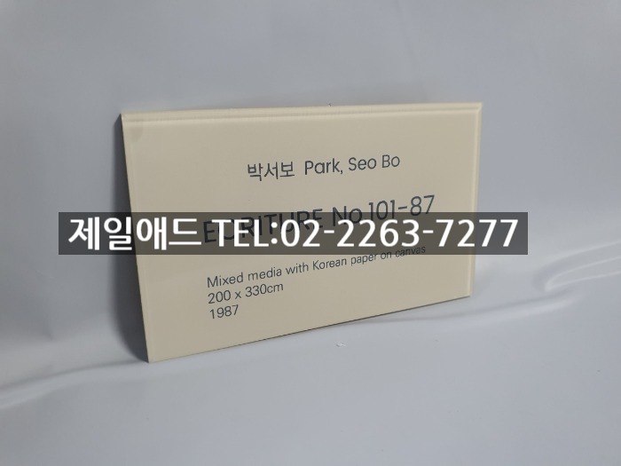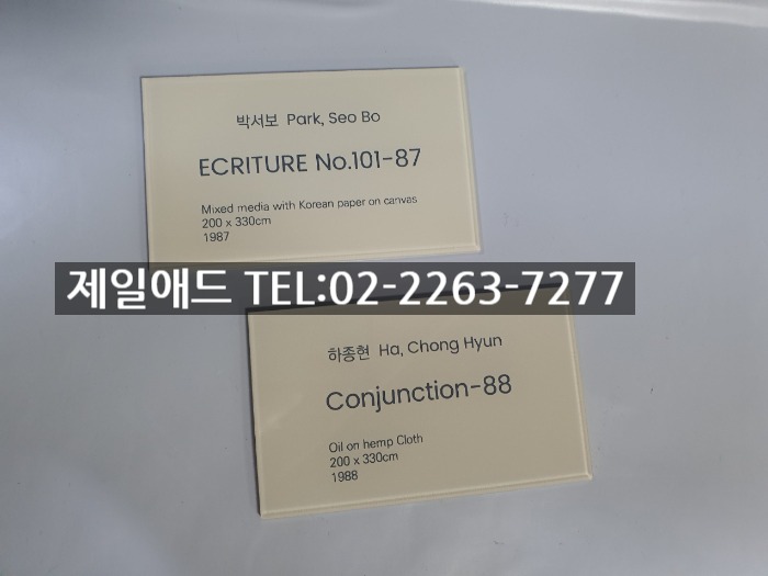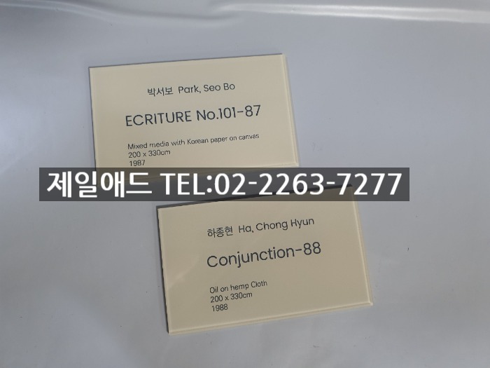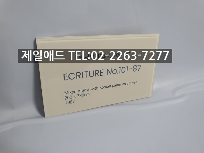 Pa-갤러리 전시회 개인전 미술 작품 전시용 캡션 포트폴리오 네임텍 미술품 설명 표지판 아크릴 표찰 스텐 신주 안내판 동판 명판 금속 현판 제일애드 02-2263-7277