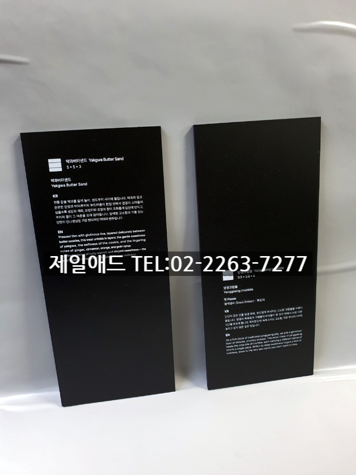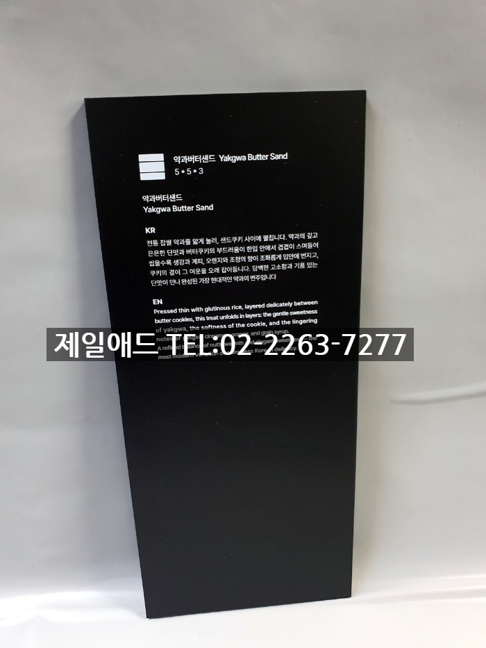오복3-갤러리 전시회 개인전 미술 작품 전시용 캡션 포트폴리오 네임텍 미술품 설명 표지판 아크릴 표찰 스텐 신주 안내판 동판 명판 금속 현판 제일애드 02-2263-7277