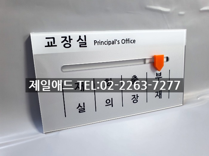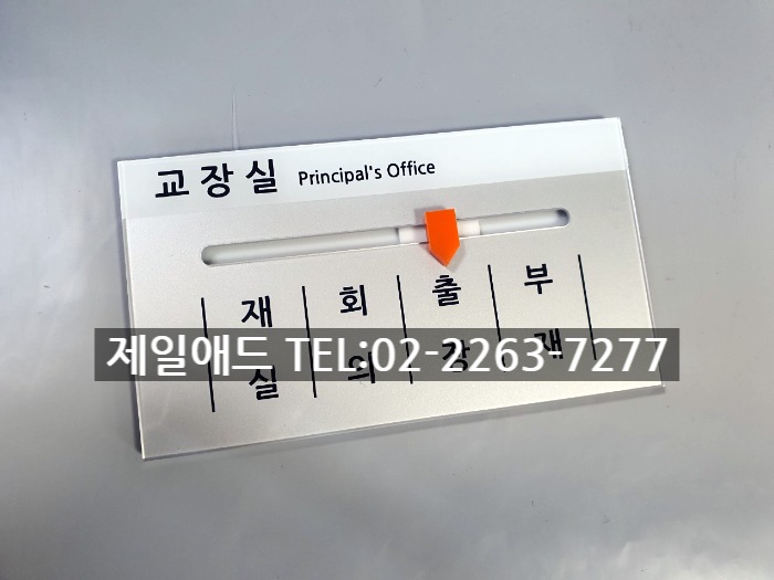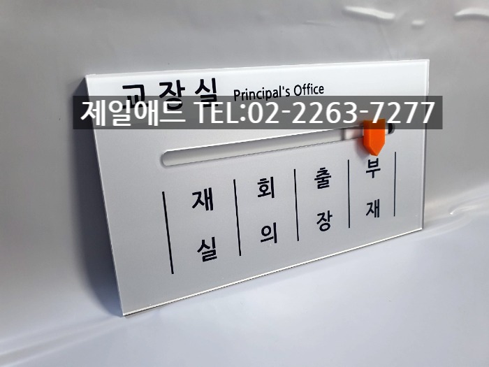 1035 재실부재중표지판-교장실 학교 표찰 재실중 표시 재중 표지판 재실 부재중 부재 회의 출장 퇴근 안내판 퇴실 명판 회의중 공실 현판 제일애드 02-2263-7277