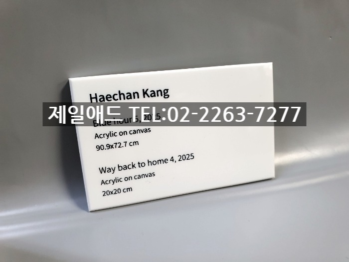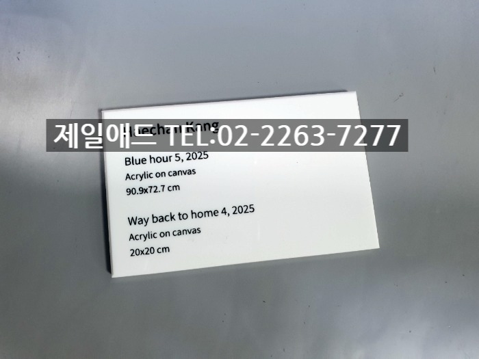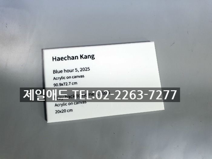 Blue-갤러리 전시회 개인전 미술 작품 전시용 캡션 포트폴리오 네임텍 미술품 설명 표지판 아크릴 표찰 스텐 신주 안내판 동판 명판 금속 현판 제일애드 02-2263-7277