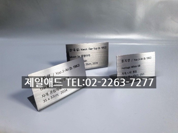 Her-갤러리 전시회 개인전 미술 작품 전시용 캡션 포트폴리오 네임텍 미술품 설명 표지판 아크릴 표찰 스텐 신주 안내판 동판 명판 금속 현판 제일애드 02-2263-7277