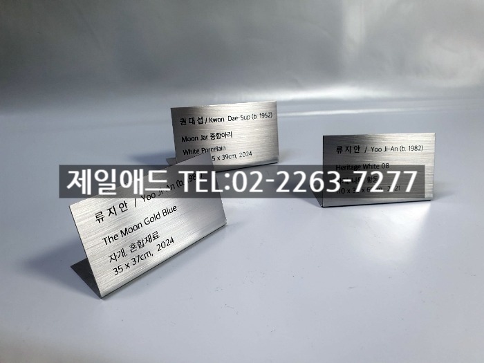 The-갤러리 전시회 개인전 미술 작품 전시용 캡션 포트폴리오 네임텍 미술품 설명 표지판 아크릴 표찰 스텐 신주 안내판 동판 명판 금속 현판 제일애드 02-2263-7277