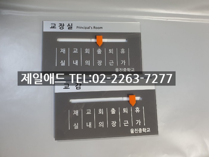 1042 재실부재중표지판-교장실 학교 표찰 재실중 표시 재중 표지판 재실 부재중 부재 교내 회의 출장 퇴근 휴가 안내판 퇴실 명판 회의중 공실 현판 제일애드 02-2263-7277