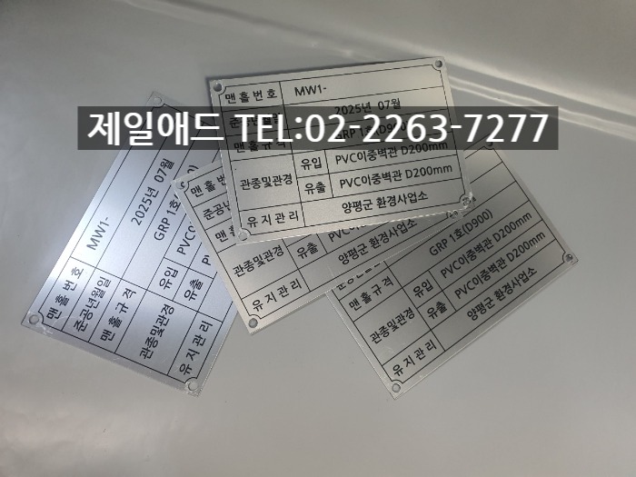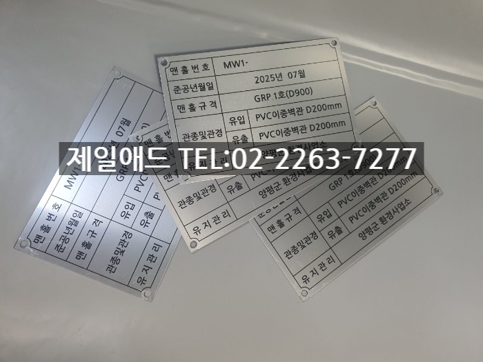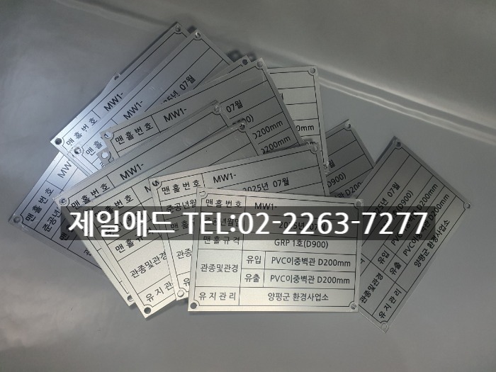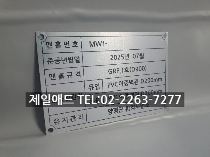 125 실명제표지판-관로인식표 맨홀인식표 맨홀 인식 명판 실명제 현판 맨홀번호 준공년월일 맨홀규격 관종 관경 유지관리 실명제 표찰 스텐 금속 알미늄 안내판 제일애드