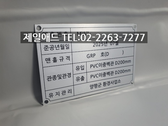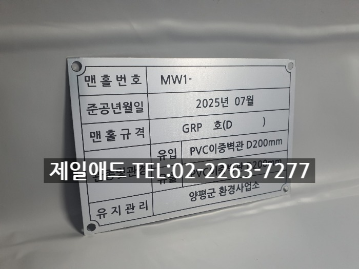 126 실명제표지판-관로인식표 맨홀인식표 맨홀 인식 명판 실명제 현판 맨홀번호 준공년월일 맨홀규격 관종 관경 유지관리 실명제 표찰 스텐 금속 알미늄 안내판 제일애드