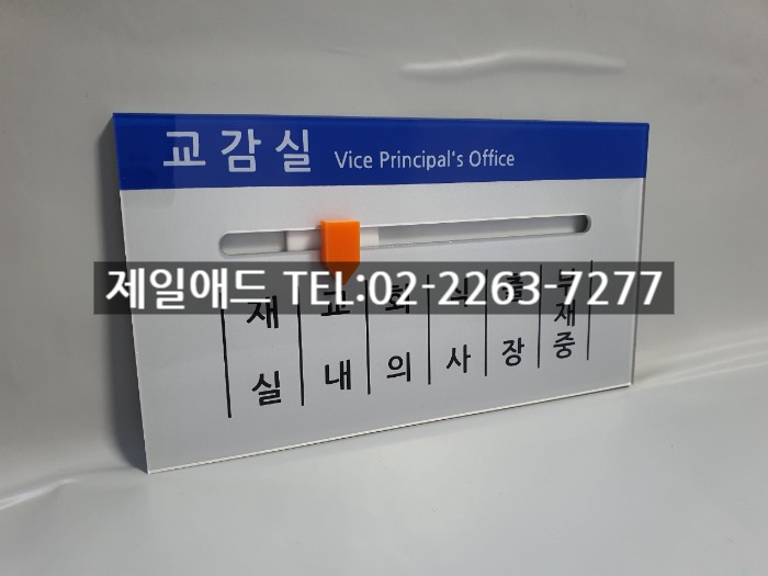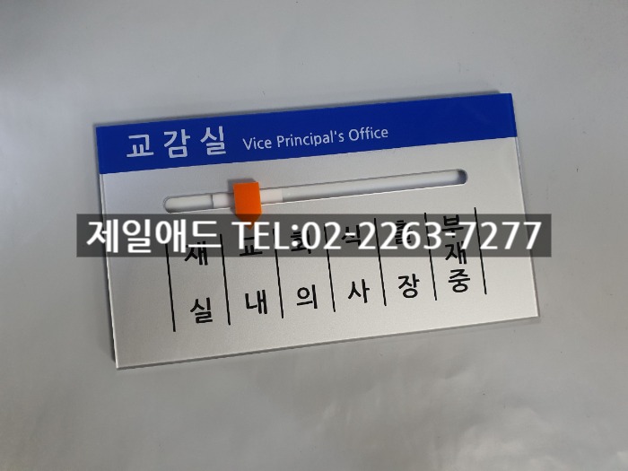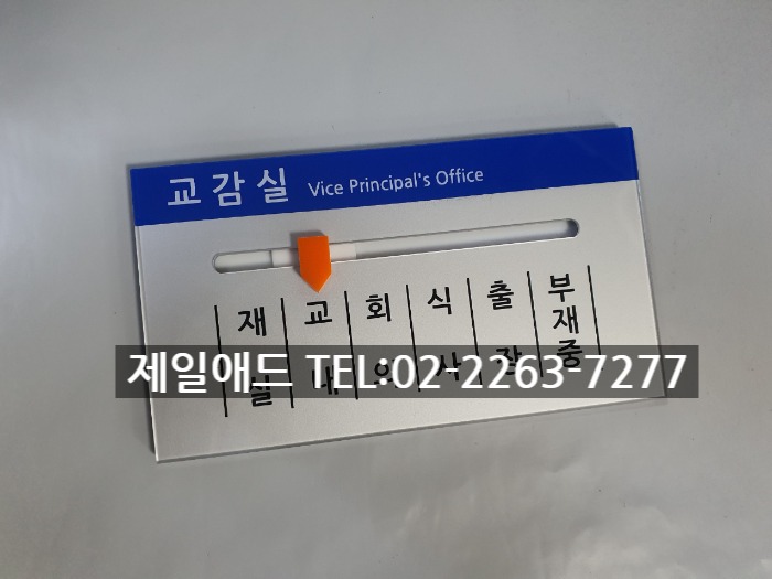 1046 재실부재중표지판-교감실 학교 표찰 재실중 표시 재중 표지판 재실 부재중 부재 교내 회의 식사 출장 퇴근 안내판 퇴실 명판 회의중 공실 현판 제일애드 02-2263-7277