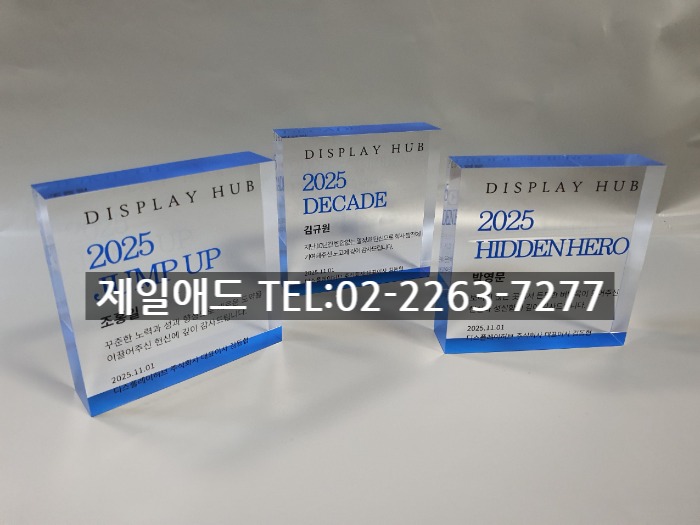 HUB-아크릴 상패 트로피 큐브 문진 블럭 감사패 공로패 표창패 위촉패 임명패 선정패 인증패 이수패 수료패 근속패 재직기념패 제일애드 02-2263-7277