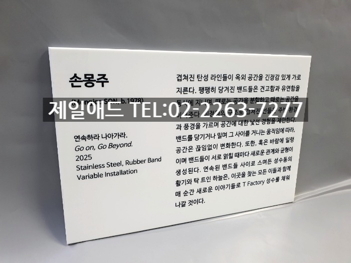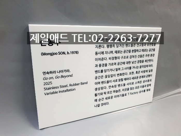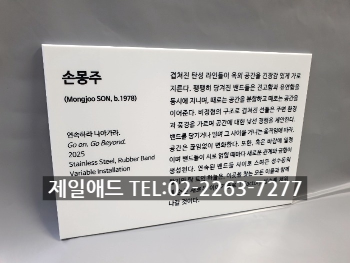 Mon-갤러리 전시회 개인전 미술 작품 전시용 캡션 포트폴리오 네임텍 미술품 설명 표지판 아크릴 표찰 스텐 신주 안내판 동판 명판 금속 현판 제일애드 02-2263-7277