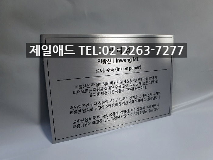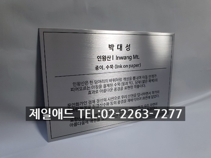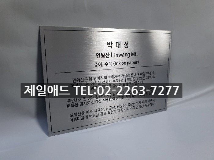 도시2-갤러리 전시회 개인전 미술 작품 전시용 캡션 포트폴리오 네임텍 미술품 설명 표지판 아크릴 표찰 스텐 신주 안내판 동판 명판 금속 현판 제일애드 02-2263-7277
