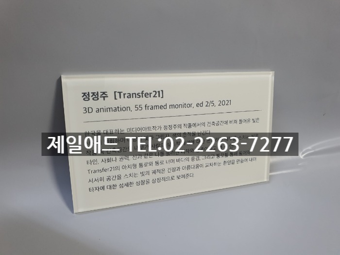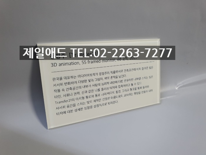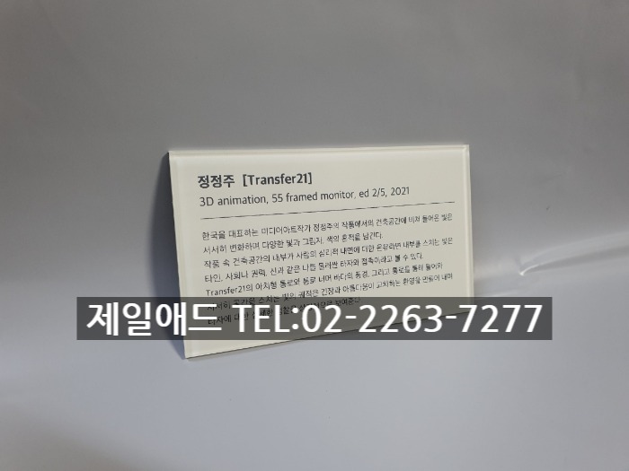 cho-갤러리 전시회 개인전 미술 작품 전시용 캡션 포트폴리오 네임텍 미술품 설명 표지판 아크릴 표찰 스텐 신주 안내판 동판 명판 금속 현판 제일애드 02-2263-7277