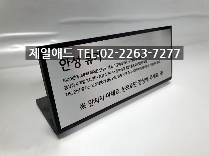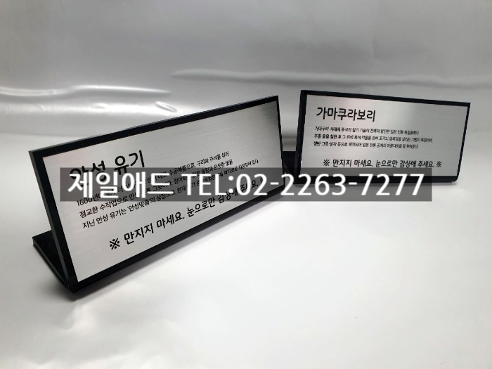 이름1-전시현판 설명명판 브렌드 표지판 브랜드 전시용 표찰 전시품 설명표시판 금속 스텐드 알림판 제품 안내판 제일애드 02-2263-7277