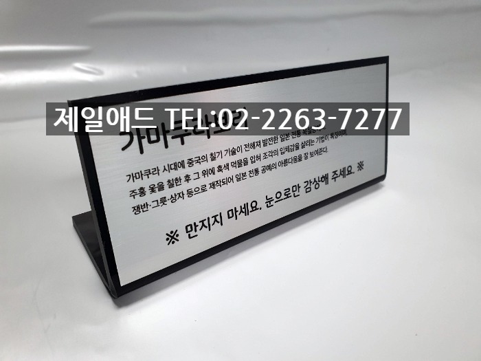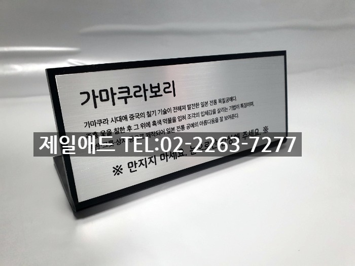 이름2-전시현판 설명명판 브렌드 표지판 브랜드 전시용 표찰 전시품 설명표시판 금속 스텐드 알림판 제품 안내판 제일애드 02-2263-7277
